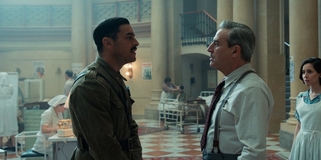 El foco de la puesta en escena está en las situaciones que se originan a propósito de los preparativos, reunión y velada en los salones del Palace; es decir, es casi 'una puesta en cena'. Y el foco de la interpretación está en los apuros del maître (Alberto San Juan) y del joven teniente encargado de supervisar ese festejo bélico gastronómico (Mario Casas) y en las hostilidades entre los equipos de cocina, unos republicanos, otros nacionales, y la aparición del grotesco comandante falangista que interpreta Asier Etxeandia. Están perfectamente engrasadas en la pantalla la intriga, la sensación de peligro, el ácido sentido del humor y la ligereza del retrato y carácter de los personajes, desde el de Franco hasta el de los cocineros, los invitados y 'las parientas'. Habrá quien busque 'seriedad' o segundas y retorcidas lecturas en lo que es ligereza, transparencia y película, pero qué se puede esperar de un tiempo en el que aún hay gente que discute sobre si la tierra es plana o redonda, y que discutirá sobre si el final de esta película es pertinente o impertinente. Es, sencillamente, genial.