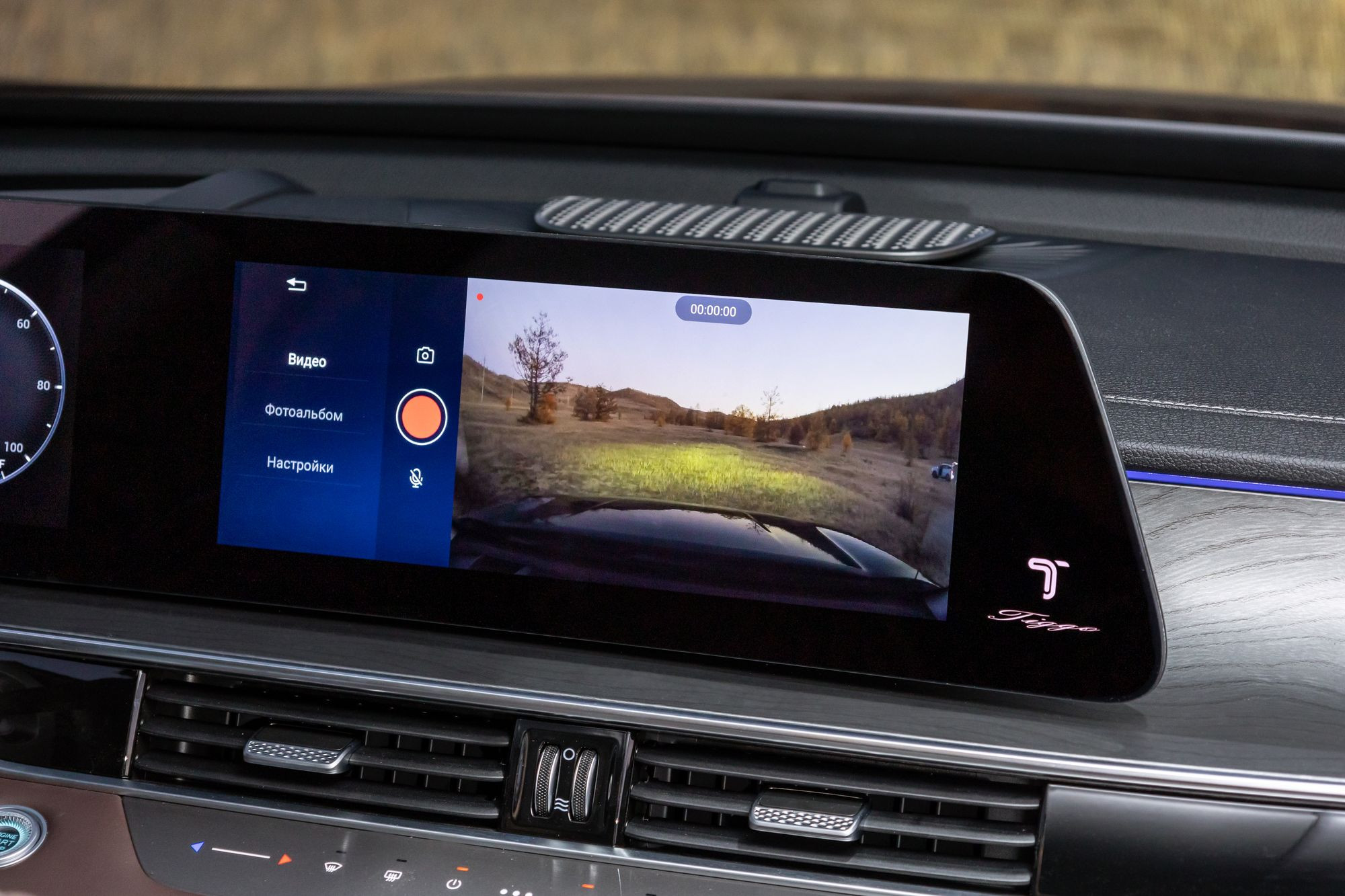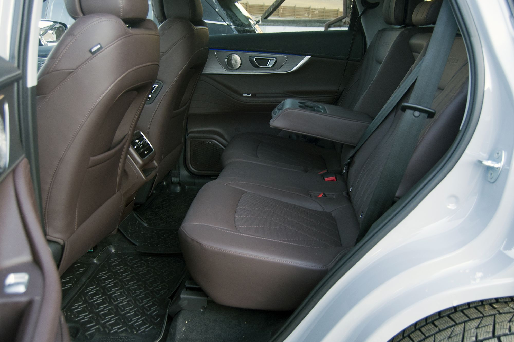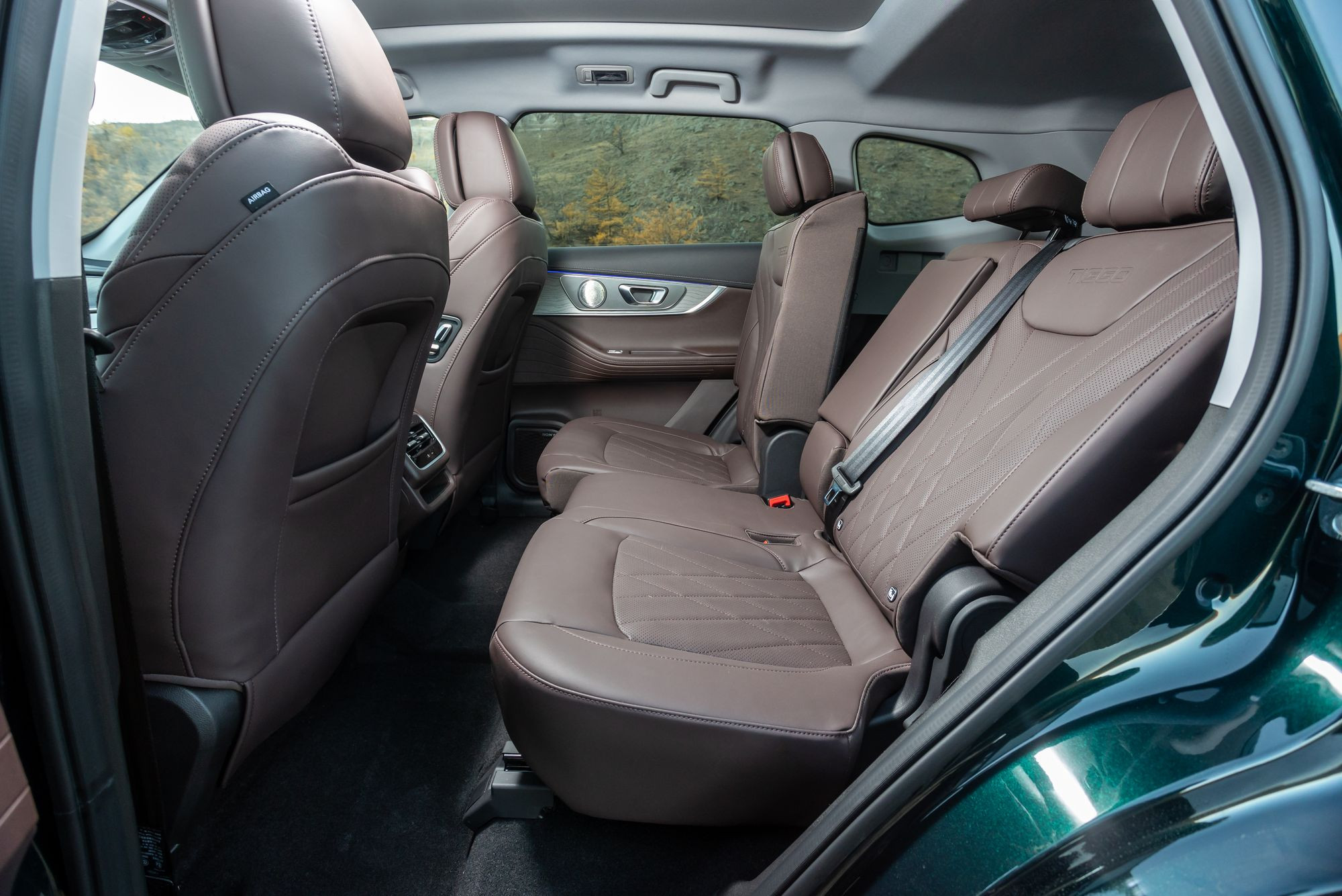 Внутри изменения более заметные. Сразу бросается в глаза изогнутая панель из двух 12,3-дюймовых экранов – стильно, модно, молодёжно. Изменились центральный тоннель, блок управления климатом, селектор коробки. А если приглядеться, то есть и некоторые другие новшества, которые пошли новой «восьмёрке» на пользу. Например, другое салонное зеркало. Раньше оно имело ярко выраженную сферическую форму. Понять можно: всегда интересно, чем заняты дети на третьем ряду сидений, а со сферическим зеркалом их было видно прекрасно. Да что там третий ряд – прекрасно было видно весь салон. А вот то, что происходило позади машины, было видно не очень хорошо. Тут в зеркале видны и салон, и пейзаж сквозь стекло задней двери. То есть, стало однозначно лучше. Вторая деталь – это резиновые вставки в кармашках. Кармашков по всему салону много, и если раньше в них бренчали ключи, мелочь, телефоны, зажигалки и всё прочее, что туда можно сложить, то сейчас ничего не бренчит – есть мягкие резинки. Отмечу, что про их необходимость говорили владельцы первых «восьмёрок», и китайцы их просьбы услышали. И это очень хороший признак. Забегая вперёд, отмечу, что появилась ещё проекция на лобовое стекло, но это можно было заметить только во время теста.