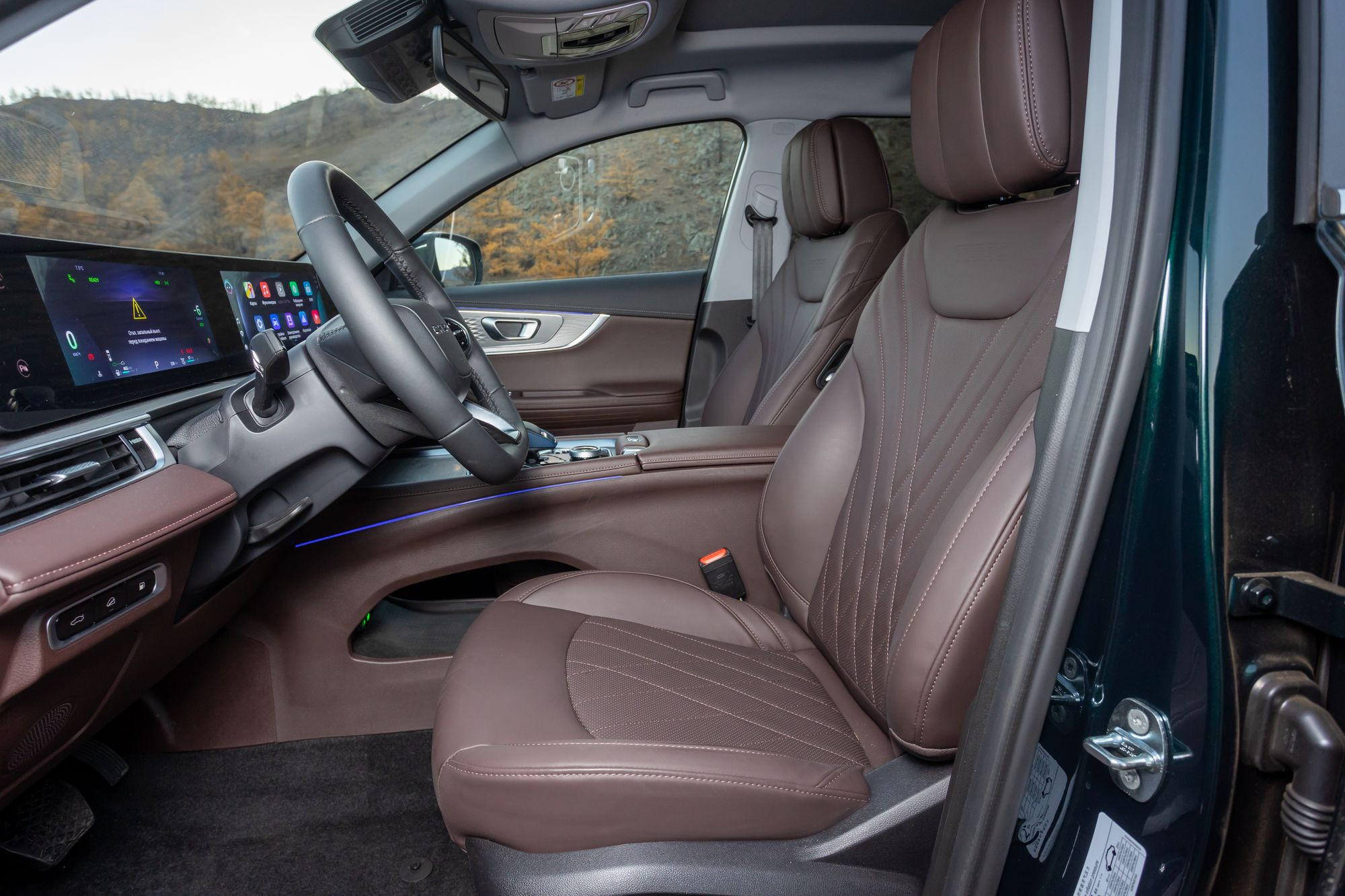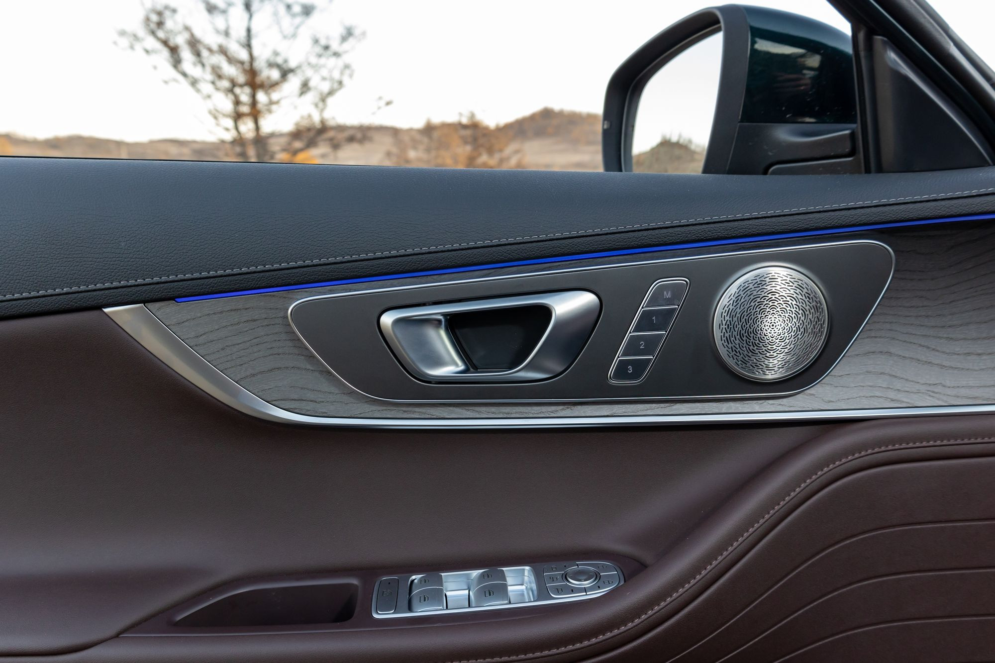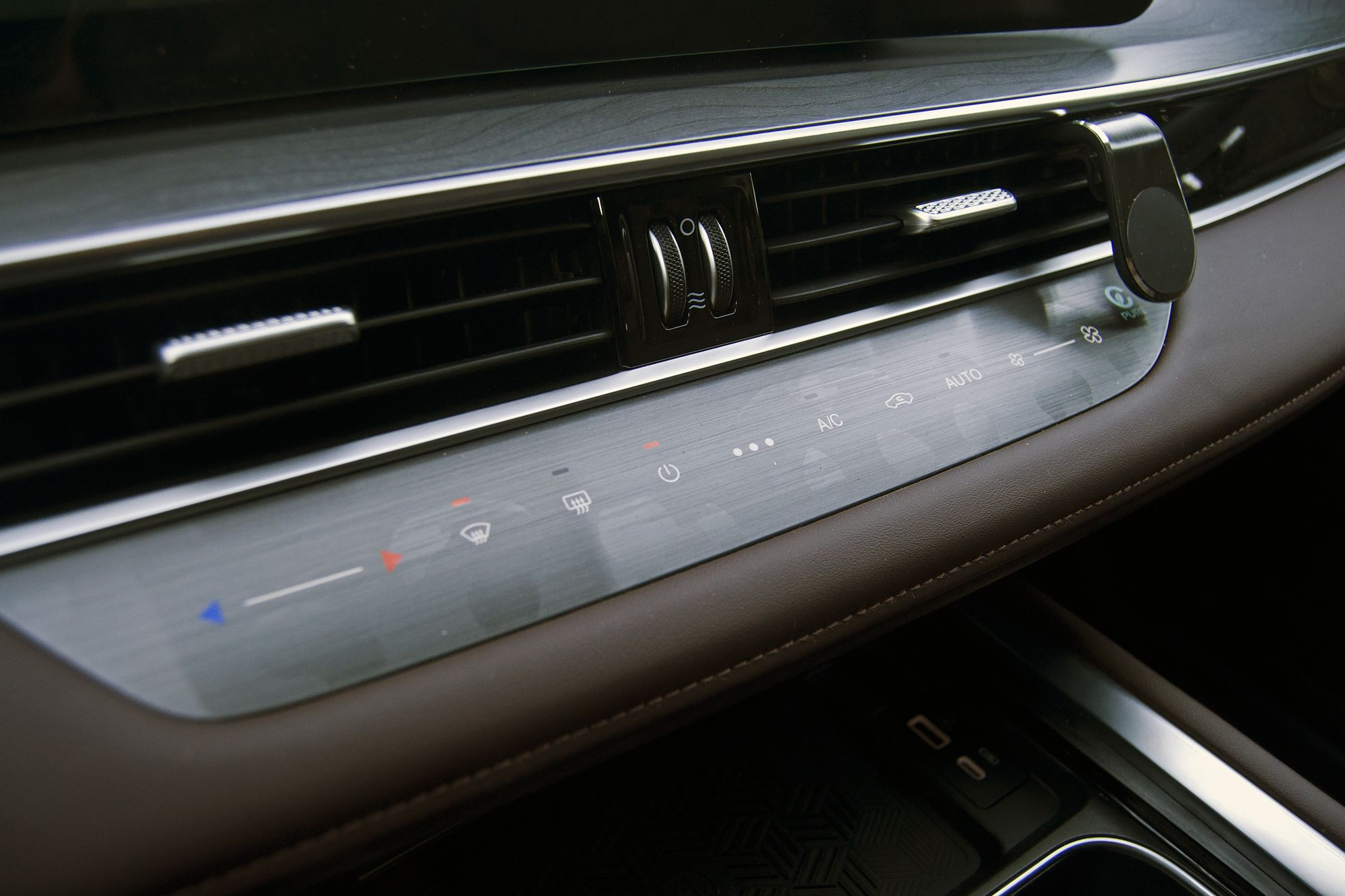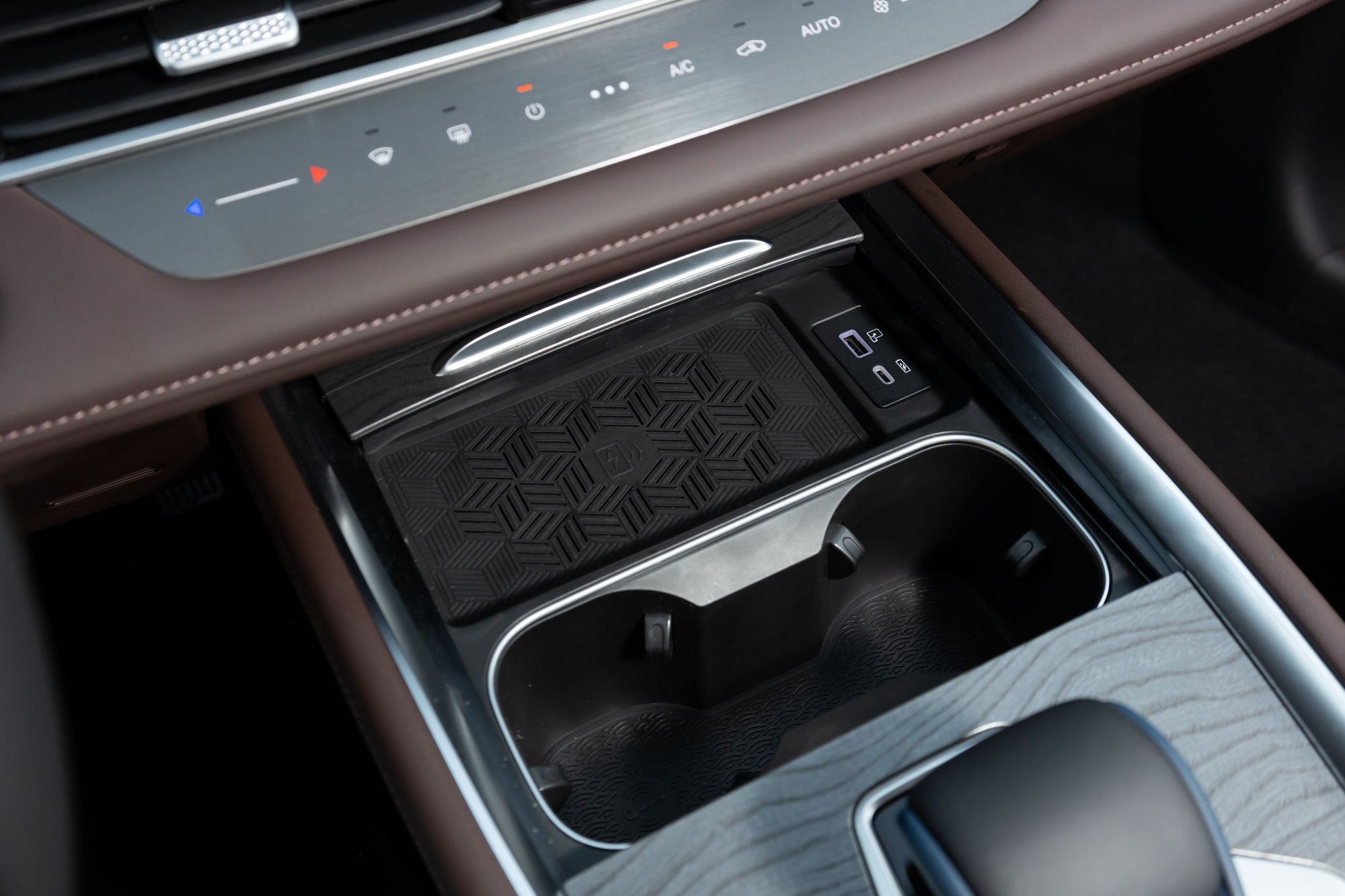 Внутри изменения более заметные. Сразу бросается в глаза изогнутая панель из двух 12,3-дюймовых экранов – стильно, модно, молодёжно. Изменились центральный тоннель, блок управления климатом, селектор коробки. А если приглядеться, то есть и некоторые другие новшества, которые пошли новой «восьмёрке» на пользу. Например, другое салонное зеркало. Раньше оно имело ярко выраженную сферическую форму. Понять можно: всегда интересно, чем заняты дети на третьем ряду сидений, а со сферическим зеркалом их было видно прекрасно. Да что там третий ряд – прекрасно было видно весь салон. А вот то, что происходило позади машины, было видно не очень хорошо. Тут в зеркале видны и салон, и пейзаж сквозь стекло задней двери. То есть, стало однозначно лучше. Вторая деталь – это резиновые вставки в кармашках. Кармашков по всему салону много, и если раньше в них бренчали ключи, мелочь, телефоны, зажигалки и всё прочее, что туда можно сложить, то сейчас ничего не бренчит – есть мягкие резинки. Отмечу, что про их необходимость говорили владельцы первых «восьмёрок», и китайцы их просьбы услышали. И это очень хороший признак. Забегая вперёд, отмечу, что появилась ещё проекция на лобовое стекло, но это можно было заметить только во время теста.