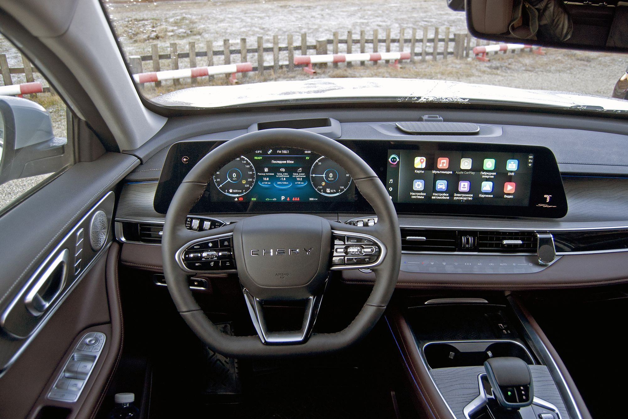 Интерьер Tiggo 8 Pro Plug-in Hybrid оставляет самые приятные впечатления. Большое спасибо дизайнерам за то, что они не пытались построить из него будуар императрицы Марии Александровны, который лучше видеть в Эрмитаже, а не в салоне автомобиля. Некоторые азиатские дизайнеры упорно продолжают делать дорого-богато, но безвкусно. В Chery этого недостатка избежали, и салон обновлённой «восьмёрки» порадует любого эстета. Осталось, правда, немного уже надоевшего и совсем не практичного чёрного рояльного лака, но да бог с ним – немного можно, вид не портит. Зато никаких кривых зазоров, косых швов и торчащих болтов и саморезов нет. Ладно, рубану с плеча: благородный салон, ничего не скажешь. Но я же говорил, что требования к дорогой машине у меня всё-таки завышенные, так что немного критики всё-таки будет.