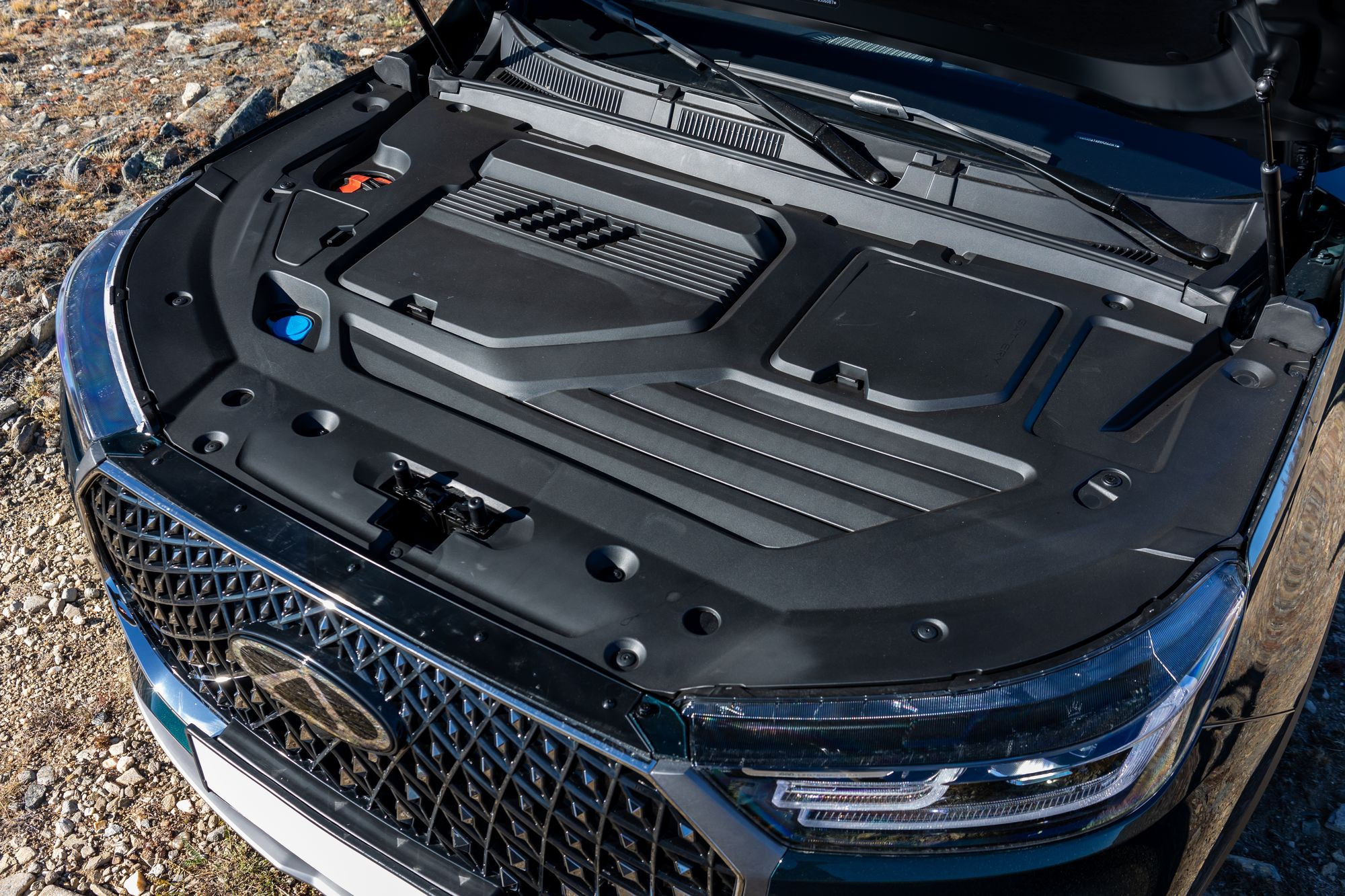 На первый взгляд снаружи Tiggo 8 PRO Plug-in Hybrid не сильно отличается от предыдущего Tiggo 8 PRO e+ (разве что теперь писать его название стало ещё сложнее), но он действительно красавчик. Буквально несколько элементов дизайна освежили ему и без того вполне современный экстерьер: нового рисунка решётки радиатора, светящегося логотипа и 19-дюймовых колёсных дисков оказалось достаточно, чтобы показать, что Tiggo 8 PRO Plug-in Hybrid стал современнее, но не оторвался от реальности. Выглядит он сбалансированно и серьёзно, без присущего некоторым азиатским автомобилям китча. Впрочем, при габаритах 4722х1705х1860 мм и колёсной базе в 2710 мм выглядеть несерьёзным трудно.