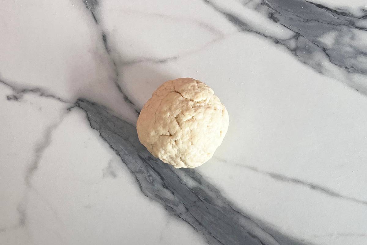 Шаг 9. Разделите тесто на три куска и раскатайте шарики в лепешки толщиной 2—3 мм. Если нет скалки, разомните ладонью — тогда толщина будет 3—4 мм.