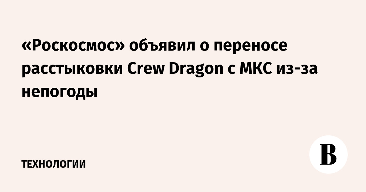 «Запланированная на сегодня расстыковка с МКС корабля Crew Dragon с экипажем миссии Crew-8, в который входит космонавт Роскосмоса Александр Гребенкин, отложена из-за неблагоприятной погоды в местах приводнения возле побережья штата Флорида», – говорится в сообщении.