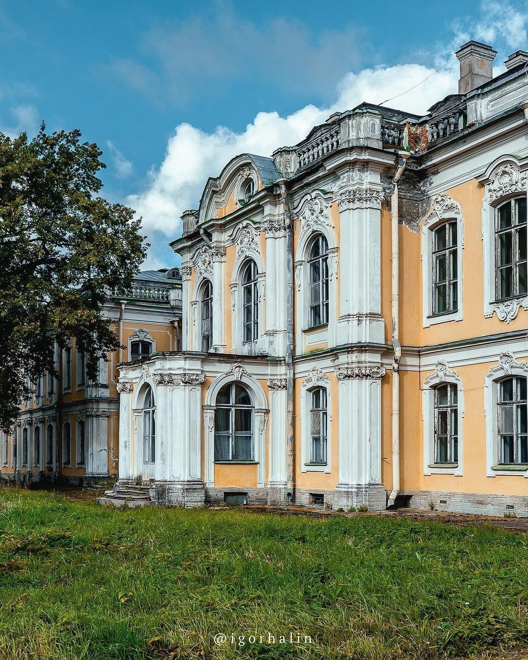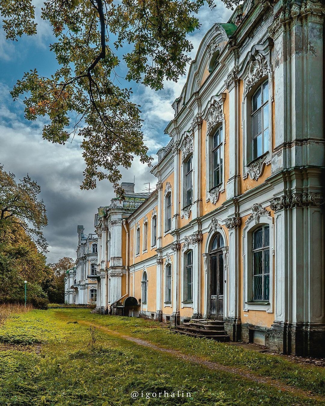 Проезжая по Петергофскогому шоссе даже не подозреваешь, что за густыми зелёными зарослями скрывается такая жемчужина дворцовой и усадебной культуры. Изысканный и величественный дворец, не уступающий по архитектурному замыслу другим дворцовым ансамблям вдоль царской дороги, влюбляет в себя сразу, с первого взгляда. Не смотря на разруху, отваливающуюся лепнину, сыплющуюся штукатурку. В нем и величие, и гармония, и романтизм! Целая палитра чувств и эмоций. От осознания его состояния, эмоции ещё сильнее.