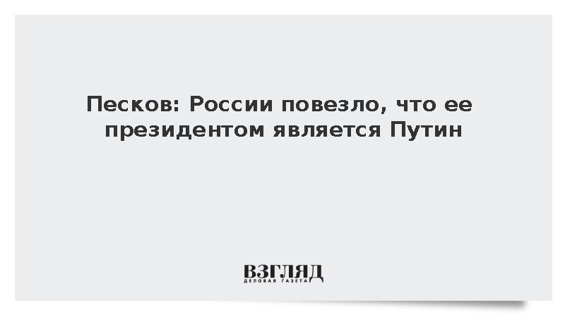 По словам Пескова, России повезло, что ее президентом является Владимир Путин, передает ТАСС.