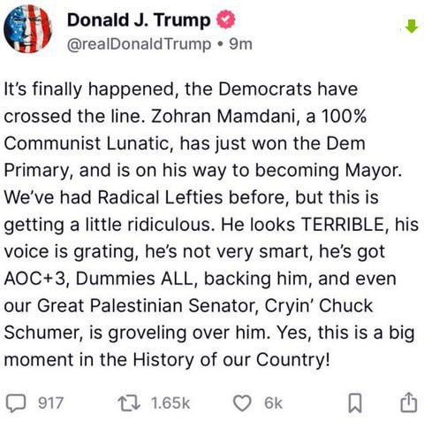 Глава США назвал Зохрана Мамдани «безумным коммунистом». По мнению президента, политик обладает целым рядом недостатков. Он «не очень умный» и «выглядит ужасно».
