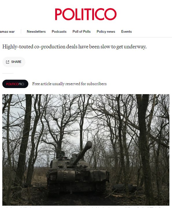 Politico: США и Европа отчаянно пытаются подписать широко разрекламированные сделки по совместному производству оружия для Украины, но разногласия тормозят процесс