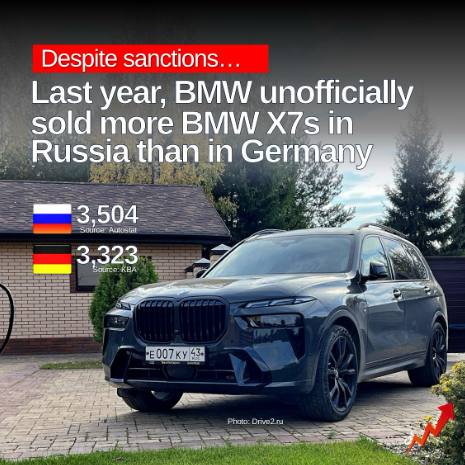 Тут это... санкции опять работают: Автожурналисты утверждают, что за 2024 год в России новых BMW X7 продали больше, чем в Германии