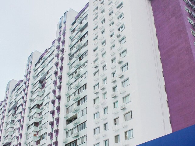 Позже рабочие утеплили здание минеральной ватой, оштукатурили, установили сетку из стекловолокна и вновь оштукатурили декоративным слоем. Дом выкрасили в цвета "фиолетово-коричневая земля" и "сигнальный белый". На балконах установили экраны из металлических кассет.