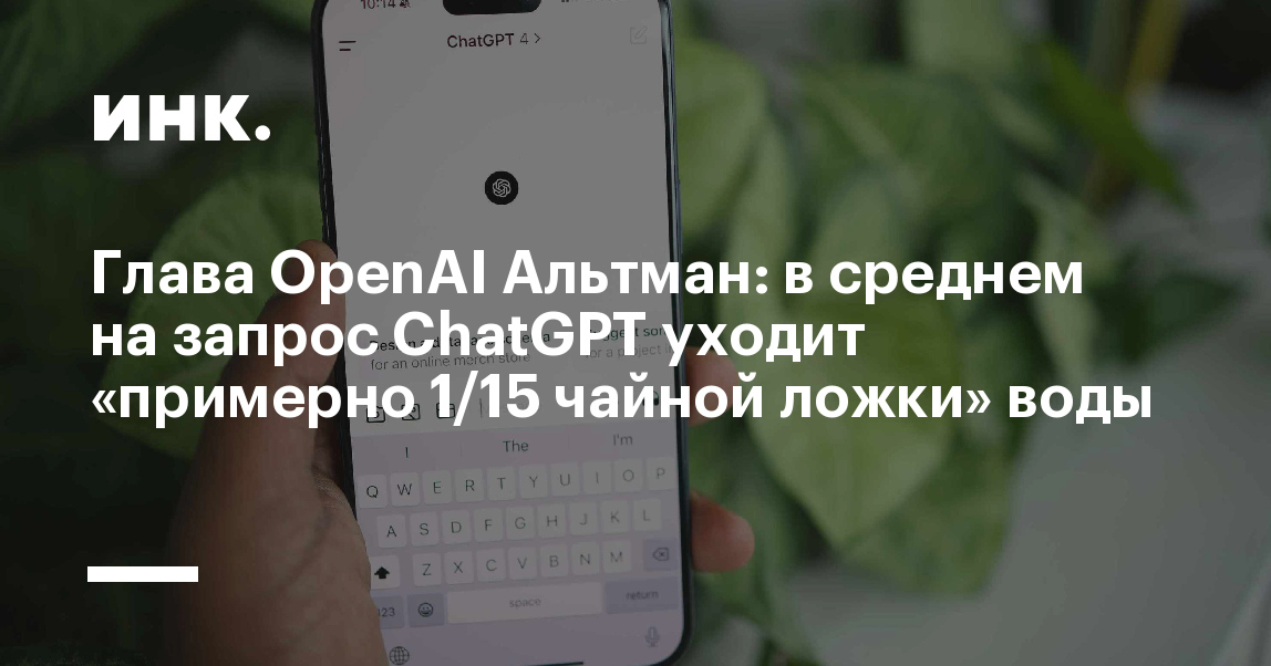 «Людям часто интересно, сколько энергии потребляет запрос в ChatGPT. Средний запрос потребляет около 0,34 Вт·ч, примерно столько же, сколько потребляет духовка за чуть более чем одну секунду или высокоэффективная лампочка за пару минут. Он также потребляет около 0,000085 галлона воды, примерно одну пятнадцатую чайной ложки», — написал Альтман.