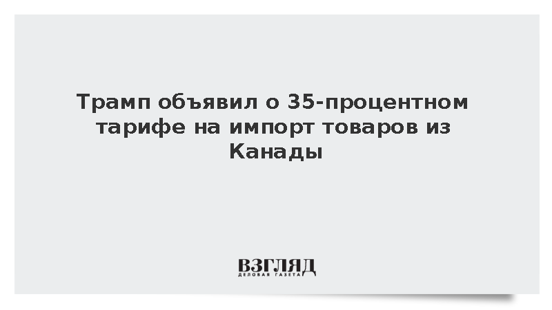 Дональд Трамп заявил о введении Соединенными Штатами нового тарифа в 35% на все импортируемые из Канады товары, начиная с 1 августа 2025 года, передает NBC News. Ранее ставки для большинства канадских товаров, не входящих в соглашение USMCA, составляли 25%, а для энергоресурсов – 10%.