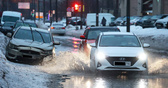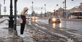 Утро 17 февраля Петербург встретил, покрытый снежно-ледяной массой. Из-за оттепели выпавшие осадки превратились в непроходимые лужи, и даже автомобилям на дорогах приходится нелегко.