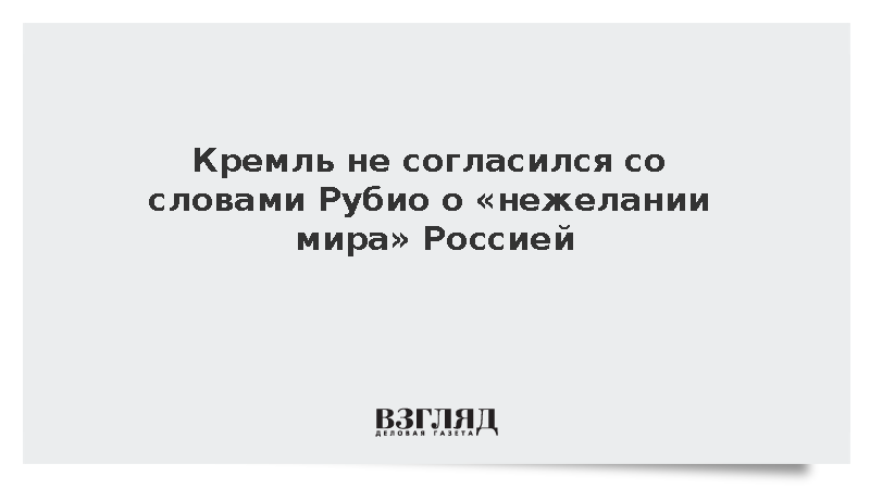 Песков: В Кремле не согласны со словами Рубио о том, что Россия не хочет мира