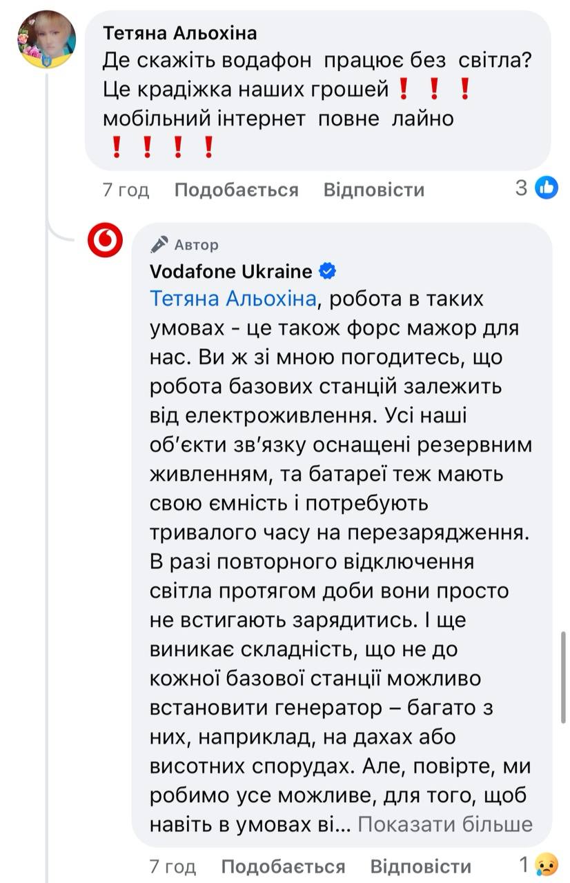 В связи с этим под публикациями основных украинских мобильных операторов (Lifecell, Vodafone, Киевстар) появляется все больше гневных комментариев и вопросов от украинцев.