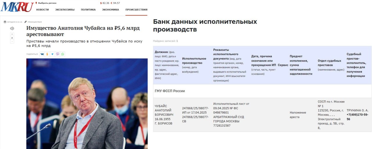 Арбитражный суд Москвы по иску «Роснано» постановил арестовать имущество Анатолия Чубайса и ещё семи бывших топ-менеджеров на сумму ₽5,6 млрд — в рамках иска о возмещении ущерба, нанесённого проектом «Plastic Logic». Ранее эти активы были заморожены.