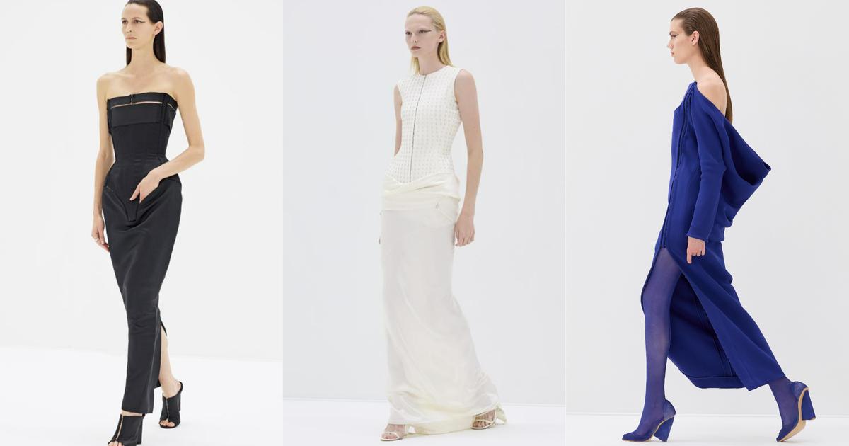 L'histoire de cette couture de l'hiver 2024-2025 ? «Pour moi, Jean Paul a été le premier à montrer les vraies gens, à mettre en avant les différences, et il a ouvert la voie à tant de monde ! Comme si ses shows nous disaient : “Vous pouvez venir à Paris et être qui vous voulez, parce que vous serez accepté.” C'est pour cela que pour ce défilé les premiers mannequins sont anonymes derrière leur voilette ou leur plastron qui monte jusqu'au front. Et, au fur et à mesure, les filles se “mettent à nu” et révèlent qui elles sont vraiment. » Les 33 passages monochromes (noir, bleu Klein, bleu ciel, kaki, bronze, blanc, poudré…) jouent sur l'épure des matières (gazar, jersey, cuir…). Aux robes ultraféminines aux drapés virtuoses succèdent des bustiers-pantalons en une pièce ou des plastrons moulants façon escrimeur cousus de centaines et centaines d'agrafes. « Elles évoquent le fameux corset mais elles sont habituellement cachées. Je sais que pour beaucoup, haute couture signifie décoration et broderies. Je ne suis pas cet homme-là. Ces petits crochets de métal sont mes broderies à moi… »