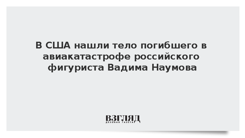 Спасатели обнаружили тело российского фигуриста Вадима Наумова, который погиб в авиакатастрофе в США, рассказала мать спортсмена Ия Наумова. Вместе с ним трагически погибла Евгения Шишкова, с которой они в 1994 году стали чемпионами мира в соревнованиях спортивных пар. Ия Наумова сообщила, что похороны пройдут в Бостоне, передает ТАСС.