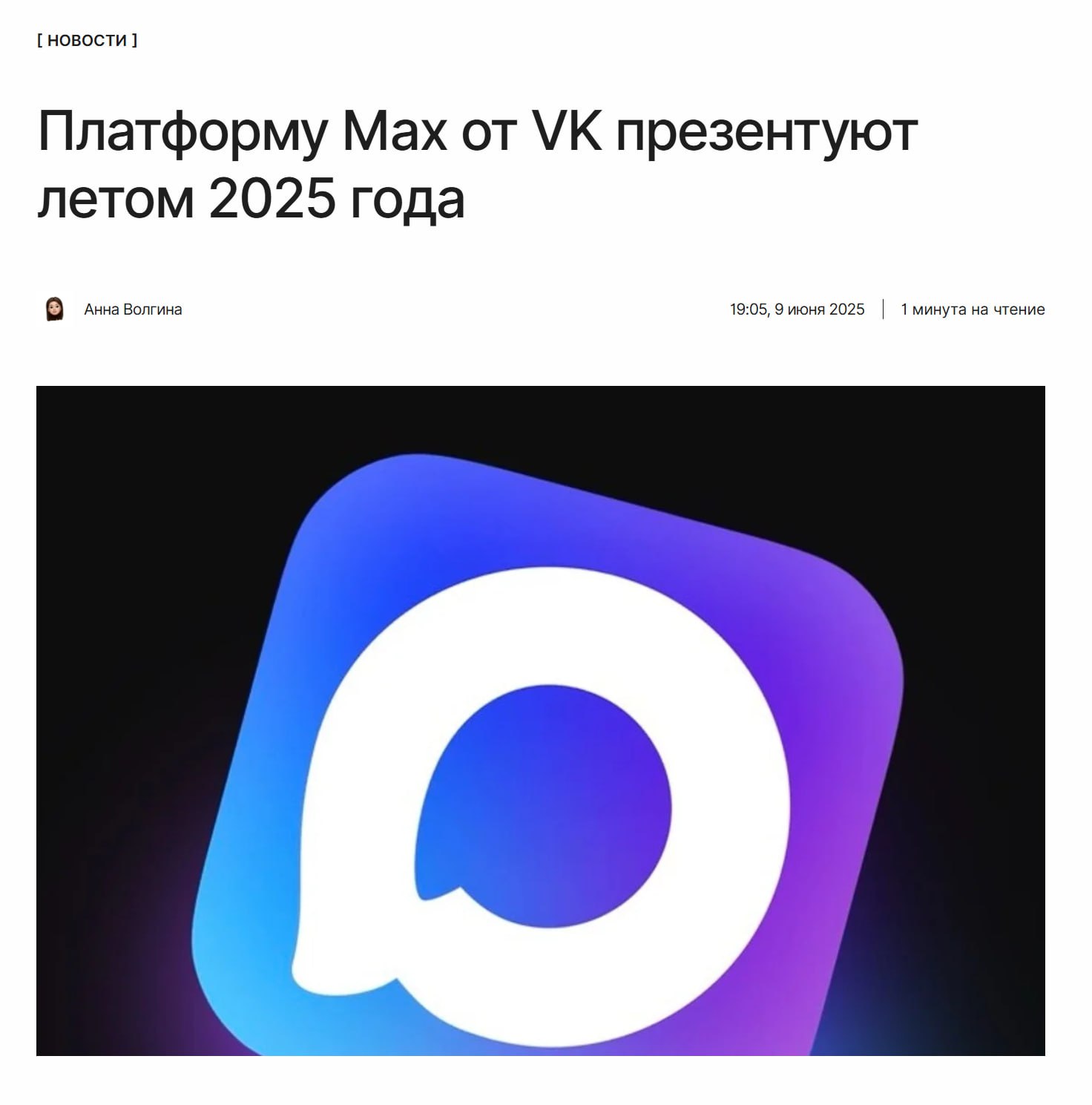 Летом 2025 года состоится презентация платформы Max от VK. В будущем на её базе будут развивать отечественный мессенджер.