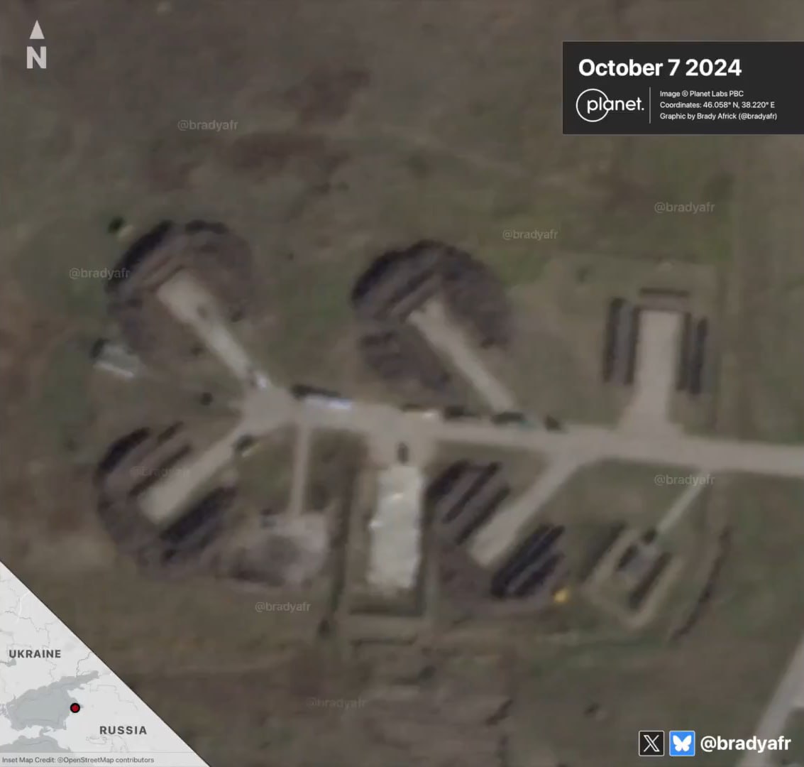 А это уже процесс возведения железобетонных укрытий на аэродроме Приморско-Ахтарск в Краснодарском крае, который также ранее неоднократно пытались атаковать украинские беспилотники.