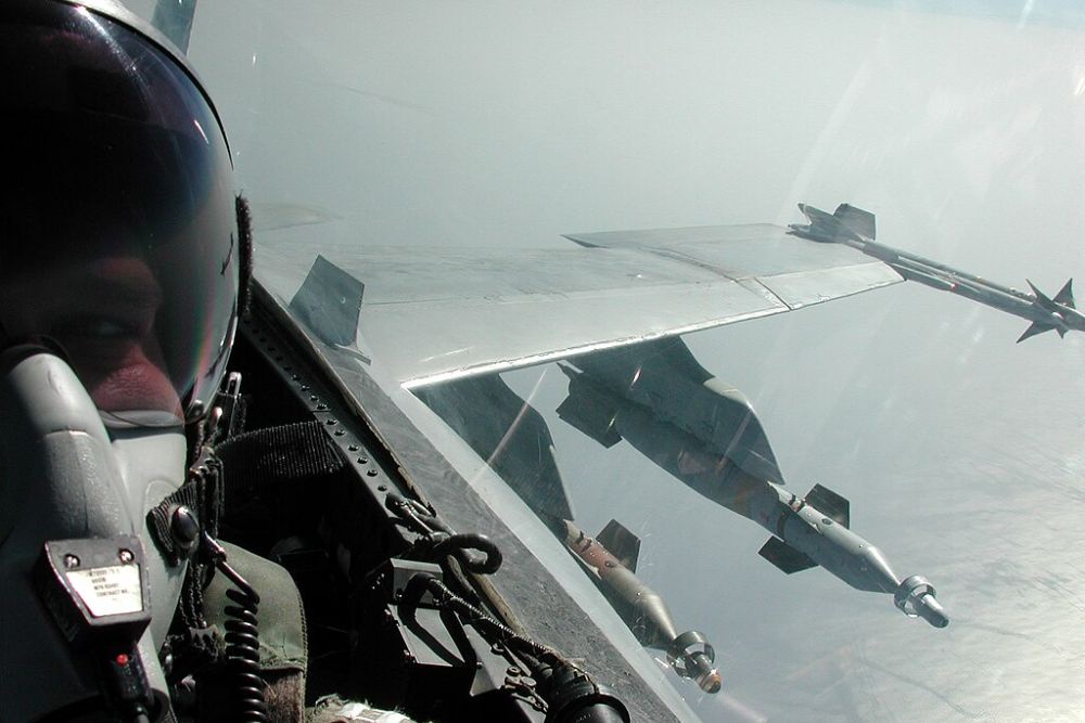 После ряда катастроф американский истребитель с украинским летчиком в кабине опасается применять пушку с короткой дистанции и выпускает по беспилотнику ракету "воздух-воздух" AIM-9. Для скоростного боеприпаса с тепловым наведением большой тихоходный беспилотник - идеальная цель.