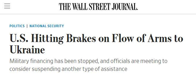 США тормозят поставки оружия Украине — WSJ. Финансирование поставок было прекращено и официальные лица проводят совещание, чтобы рассмотреть вопрос о приостановлении других видов помощи.