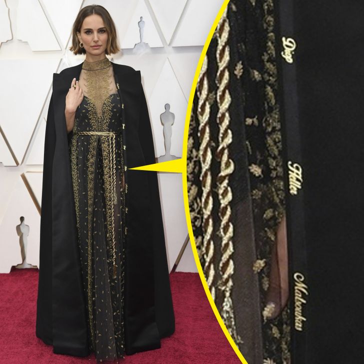 Скромный и в то же время роскошный наряд выбрала Натали Портман для 92-й церемонии вручения премии «Оскар». Она появилась в платье с золотыми кружевами и в длинной черной накидке, по краям которой были вышиты имена женщин-режиссеров, которых в том году не номинировали. Так оказалось, что эта категория оказалась полностью мужской. Позднее актриса пояснила: «Таким тонким способом я хотела отметить женщин, которые не были номинированы в этом году за свою невероятную работу».