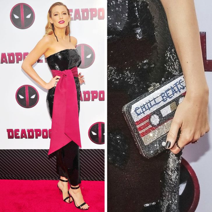 На премьере фильма «Дэдпул 2», в котором Райан Рейнольдс играл главную роль, актриса появилась с клатчем в форме кассеты, отсылающем нас к киноленте. А также выбрала для своего наряда цвета, черный и бордовый, чтобы «быть в тон» к костюму главного героя. Таким образом Лайвли попыталась выразить поддержку мужу через свое платье.