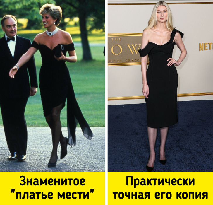 На выходе в честь премьеры 6 сезона сериала «Корона» Элизабет Дебики появилась в платье очень похожем на знаменитое «платье мести» принцессы Дианы. Таким образом актриса отдала дань уважения своей героине и повторила один из самых ярких и известных ее образов.