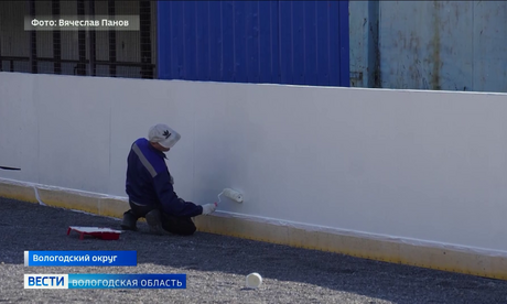 На сегодняшний день выполнены в полном объёме работы по обустройству основания, проведены ремонт и окраска бортов, заменена улавливающая сетка, также изготовлены новые раздевалки.
