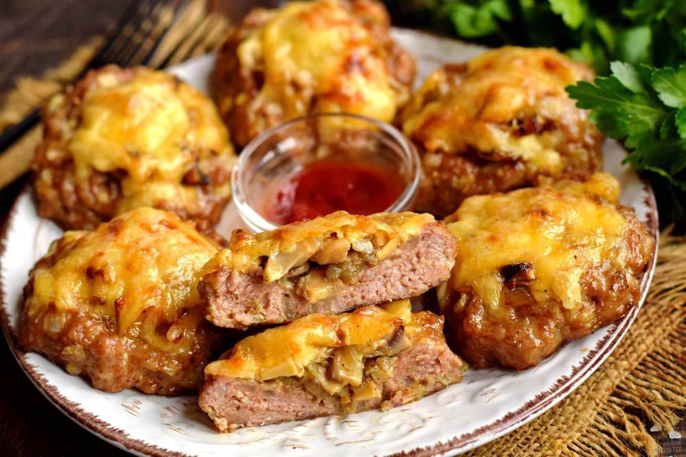 3. В каждое гнездышко закладываем грибную начинку, сверху кружок помидорки смазанной сметаной и тертый сыр.