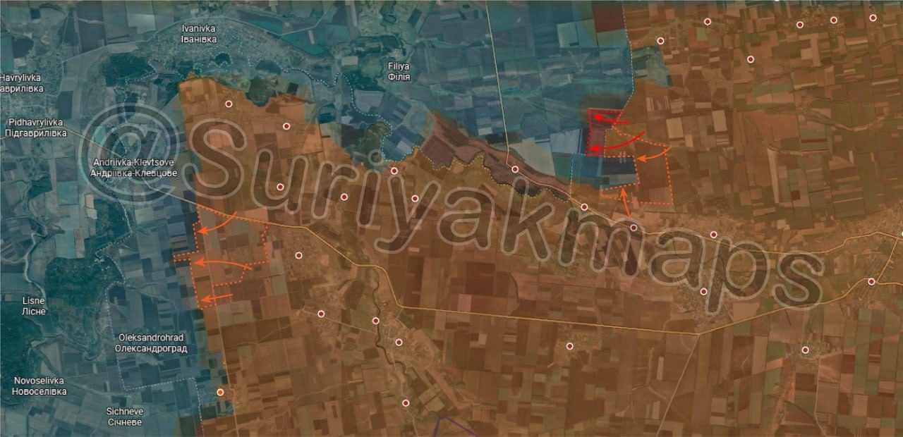 1. Ситуация на Днепропетровском направлении: Российская армия продолжает наступление к западу от Поддубного в направлении реки Волчья. Кроме того, российские войска заняли новые позиции между Зелёным Кутом и Ореховым.