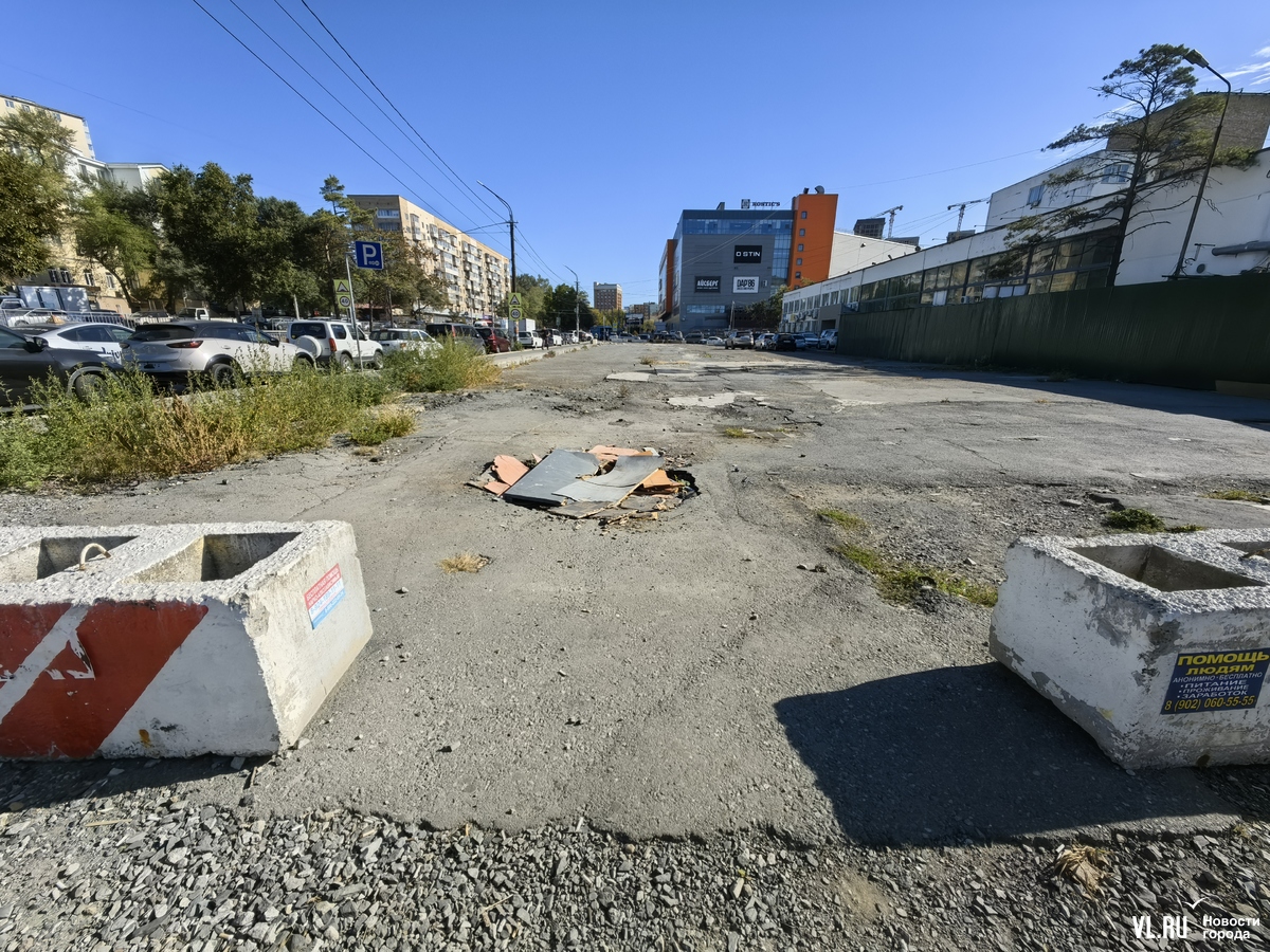 А освобождённая часть по Генплану должна превратиться в транспортную развязку, но только неизвестно когда. Вместо лотков на Русской, 2а остался пустырь с битым стеклом, кривым асфальтом и парой крупных ям, прикрытых досками. Возможные въезды на территорию закрыты бетонными блоками. Попасть на пустырь через невысокий бордюр можно со стороны автовокзала, но желающих не находится.