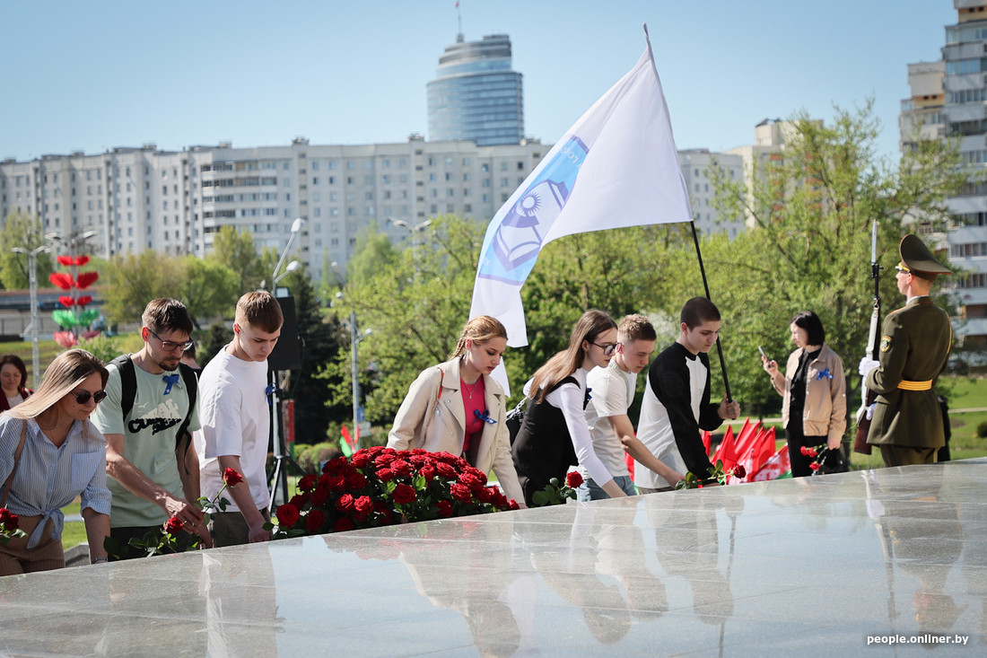 Утром у стелы «Минск — город-герой» состоялось традиционное мероприятие — возложение цветов. В нем приняли участие руководство и представители Мингорисполкома, Федерации профсоюзов Беларуси, различных министерств и ведомств. С праздником труда белорусов поздравил глава государства Александр Лукашенко.