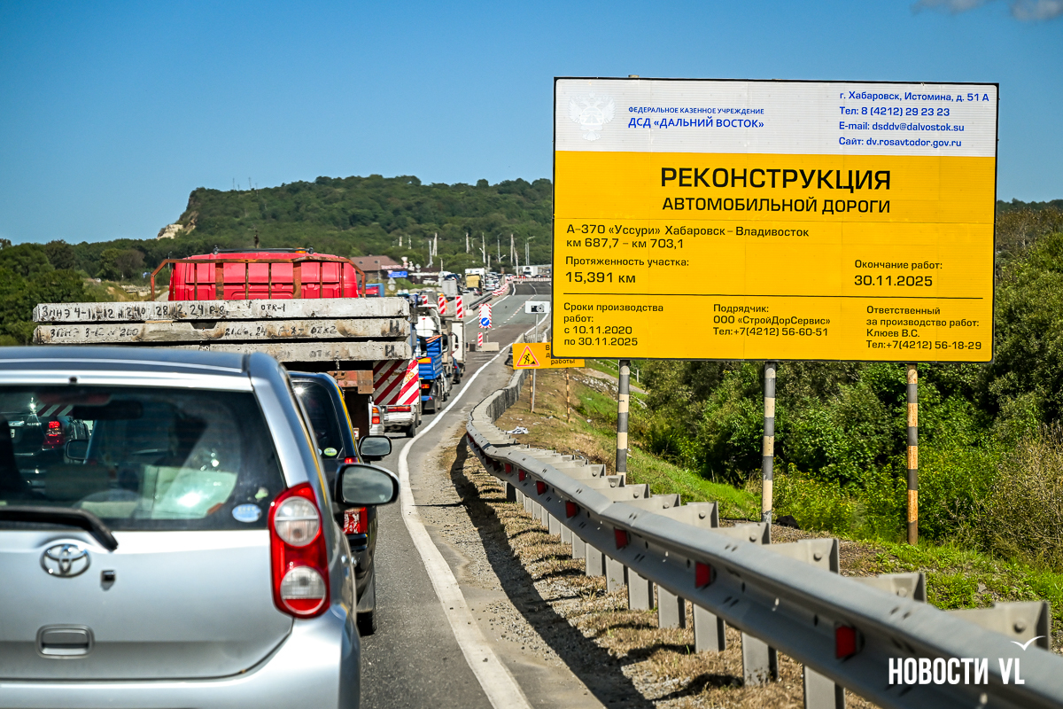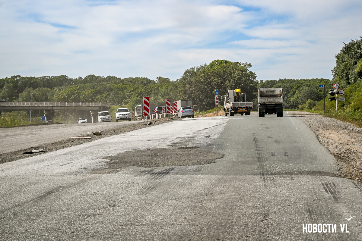 Между объездной Уссурийска и новым реконструированным участком почему-то есть буквально 100 метров в обе стороны, где дорогу не ремонтировали. С ровного асфальта влетаешь на изувеченное дорожное полотно, какое-то время поднимаешь клубы пыли, а затем снова оказываешься на хорошем ровном полотне.