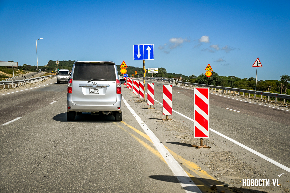 8 сентября корреспонденты Новостей VL.ru на подъезде к Кипарисово встали в пробку: внезапно оказалась закрыта половина путепровода, а ведь его сдали ещё в прошлом году. Движение сегодня осуществляется по одной стороне объекта, то есть одна полоса в сторону Хабаровска, одна – в сторону Владивостока.