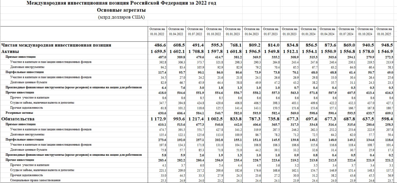 Почти двукратный рост чистой МИП России за 2022-2024 годы — это не результат накопления богатства за рубежом (значительная часть средств остается недоступной без получения инвестдохода), а следствие резкого сокращения внешних обязательств из-за массового ухода иностранного капитала и финансового декаплинга с западными рынками, вызванного геополитическими шоками.