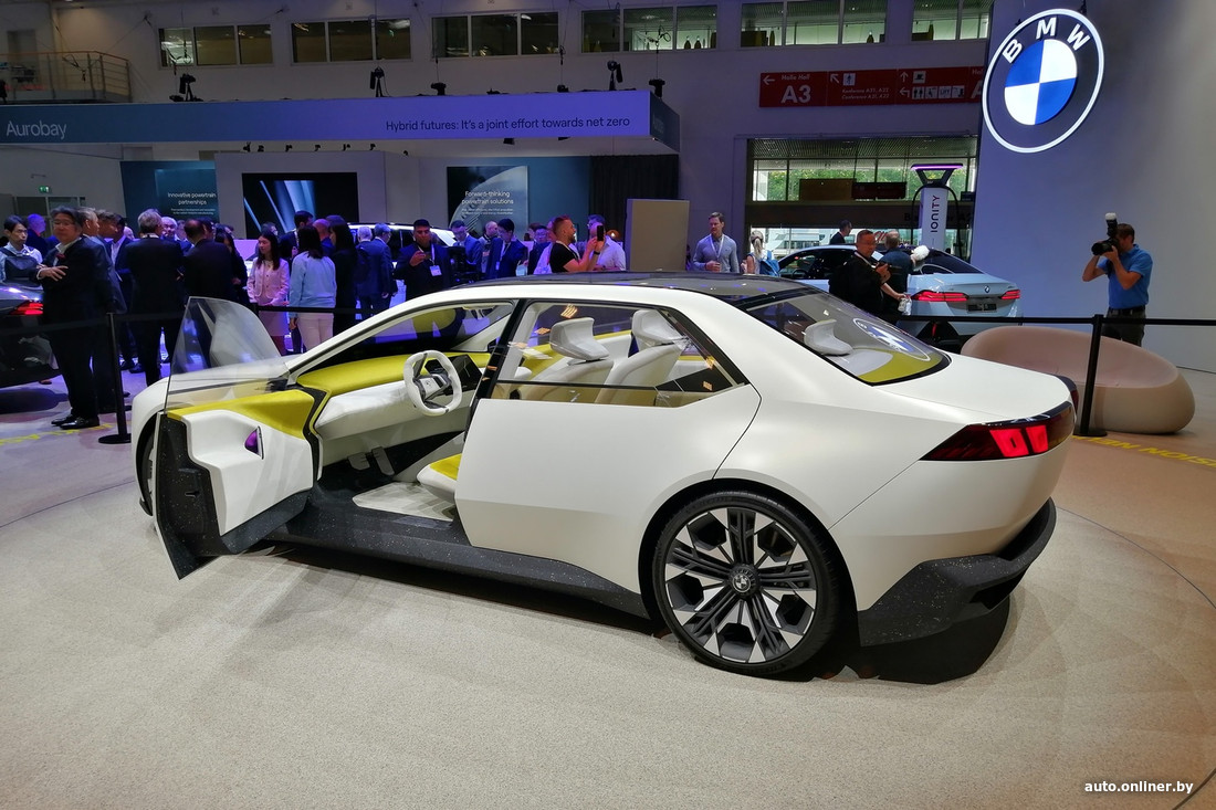 Концепт Vision Neue Klasse, который в рамках родного для себя IAA Mobility показала BMW, — это дальнейшее развитие шоукара i Vision Dee, представленного в начале года. Это предвестник будущего компактного седана, по размерам (длина 3,7 м) сопоставимого с третьей серией, который через пару лет станет первенцем целого семейства новых электромобилей баварской марки (Neue Klasse, то есть «Новый класс»). Для новой гаммы готовится отдельная платформа с 800-вольтовой электросистемой.