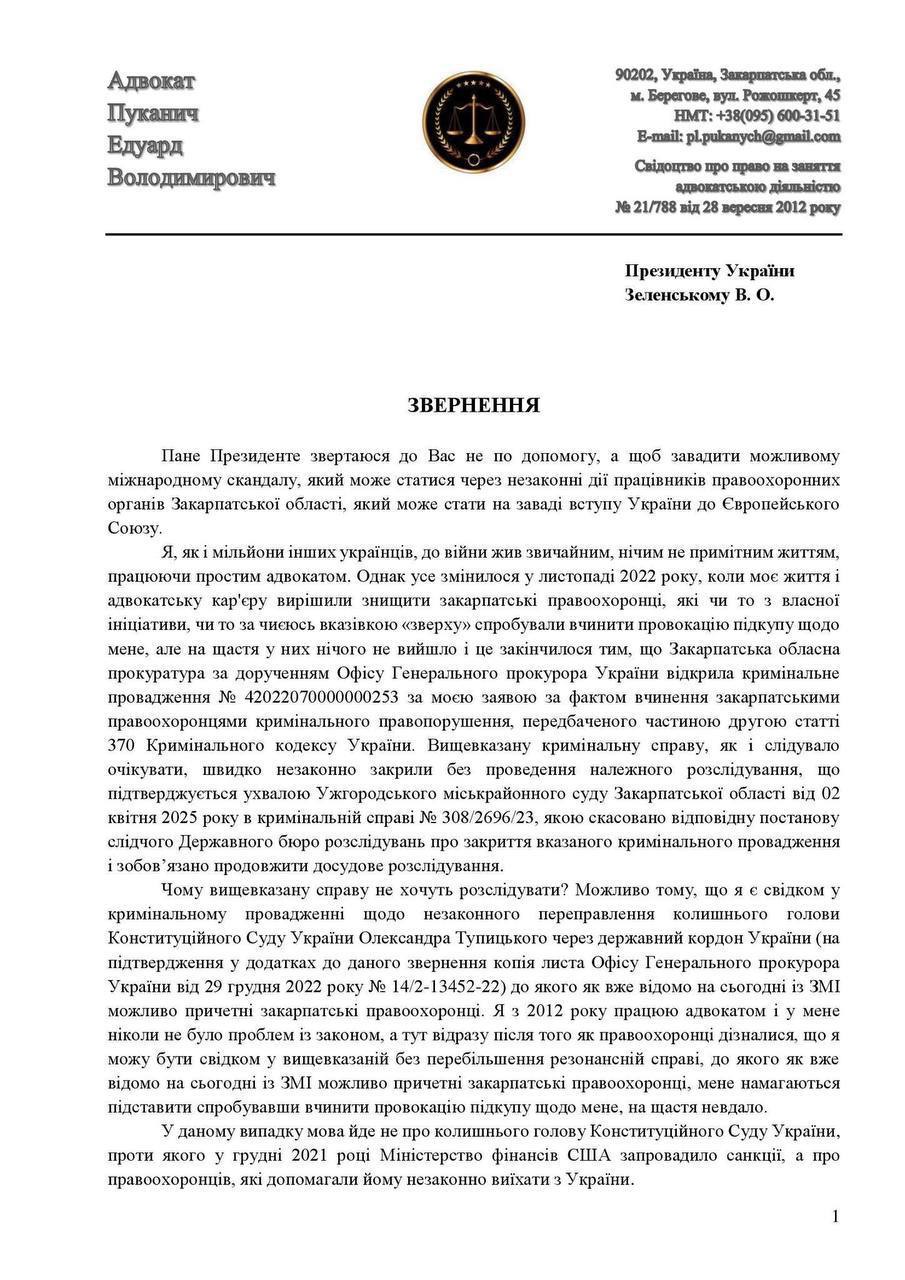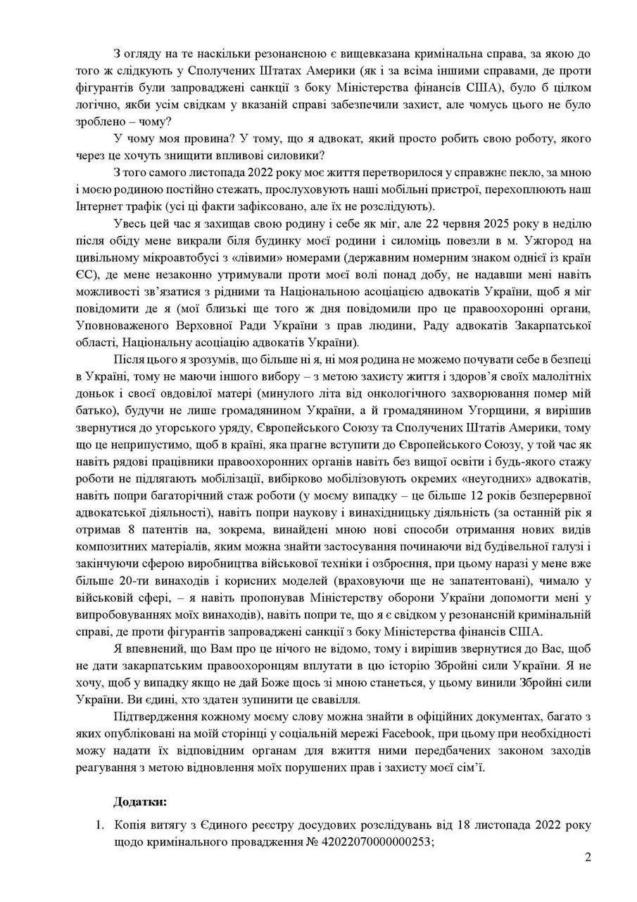 Мужчина, прорвавший на автомобиле шлагбаум на границе и сбежавший в Венгрию, оказался известным адвокатом Эдуардом Пуканичем, который ранее сообщал о своем похищении сотрудниками ТЦК. Он утверждает, что более суток удерживался против воли, лишенный связи с внешним миром.