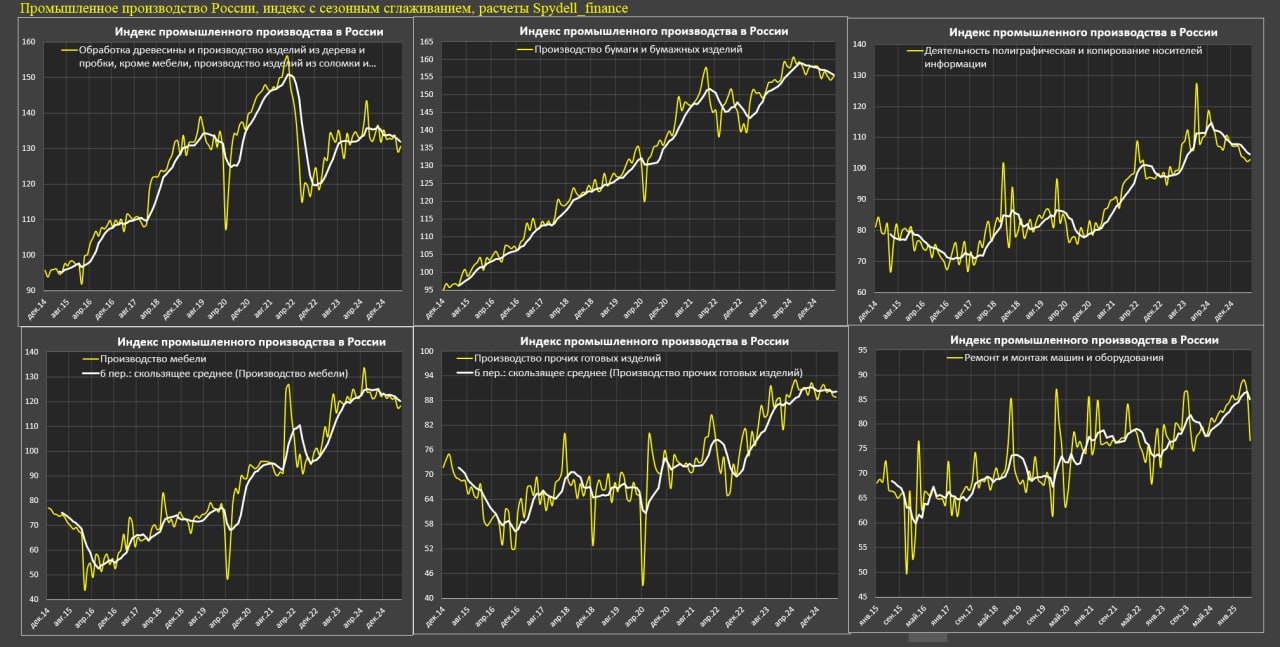 Если сравнить 2кв25 с 4кв24 с устранением сезонного эффекта, в минусе уже 16 из 24 отраслей!
