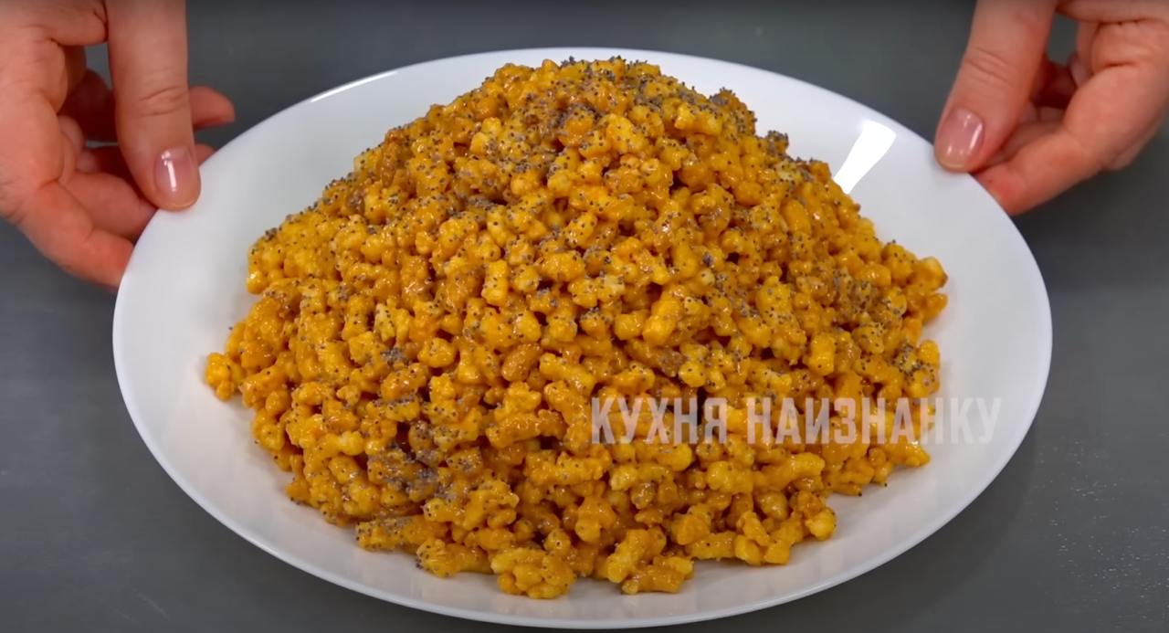 Выкладываю горкой на тарелке, чтобы получилась форма муравейника. Посыпаю маком (это как маленькие муравьи).