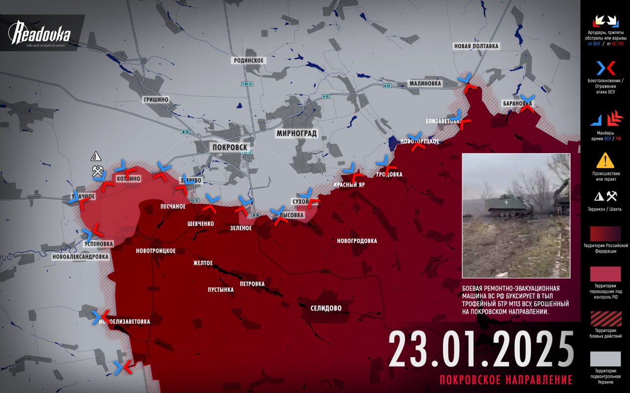 ВС РФ срывают оборонный покров ВСУ с района Покровска — итоговая сводка Readovka к исходу 23 января