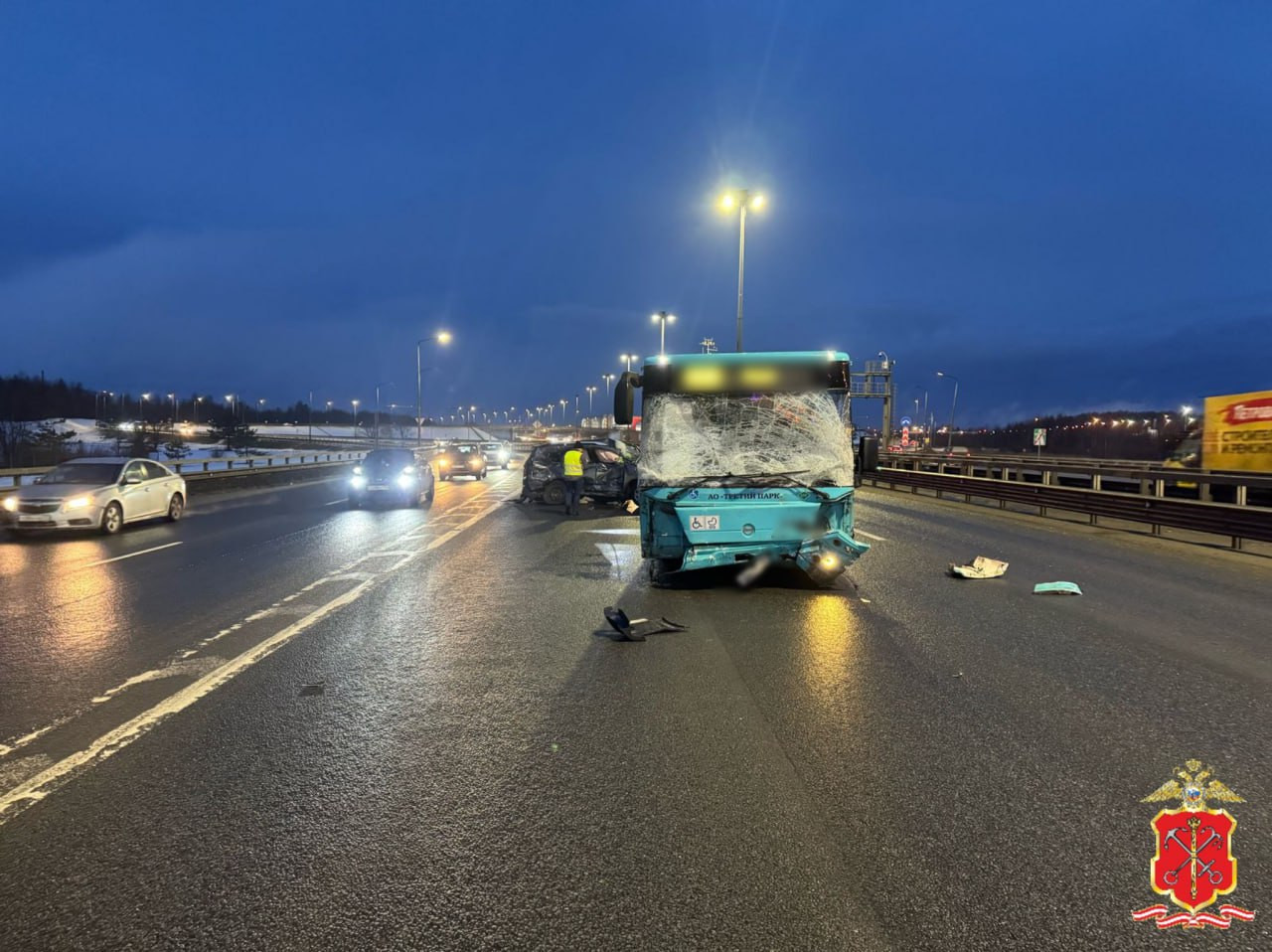 Водитель иномарки погиб на КАД столкнувшись с автобусом