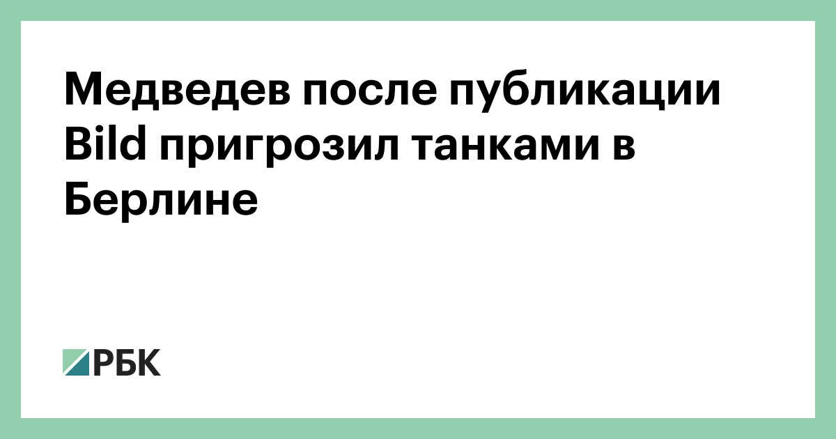 «Немецкая газета Bild опубликовала реваншистскую статью, в которой с гордостью сообщает о возвращении немецких танков на российскую землю. В ответ мы сделаем все, чтобы на площади Республики [в Берлине] появились новейшие российские танки», — написал Медведев в соцсети X (заблокирована в России).