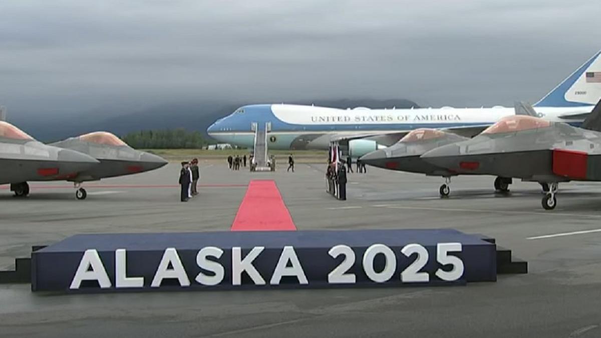 Telegram-каналы и СМИ публикуют кадры, на которых видно, как самолет американского президента приземляется в Анкоридже.