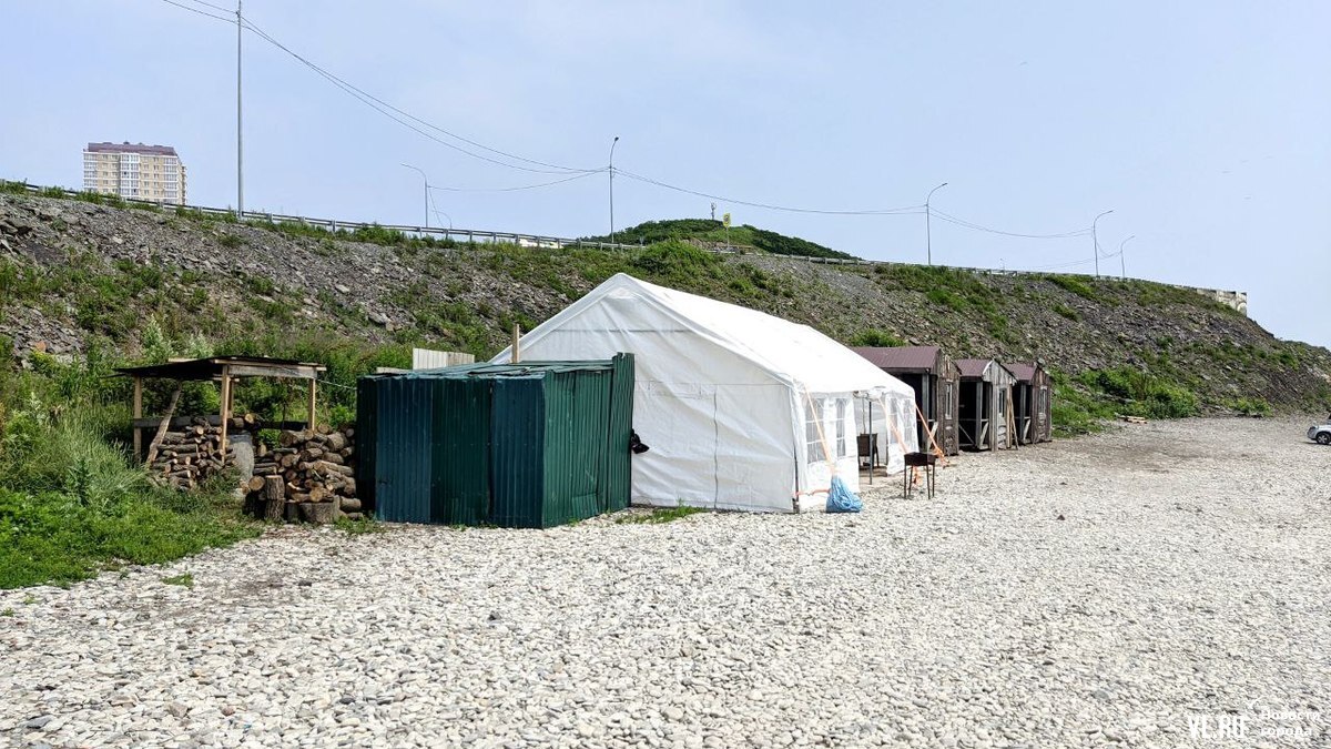 Три небольшие домика-беседки, сколоченные из неотёсанных досок, но зато с пластиковыми окнами, и белый шатёр появились на берегу бухты Соболь. Жители Владивостока сразу вспомнили (трудно такое забыть), что эти домики в прошлом году появлялись на Патрокле перед началом сезона, но вскоре пропали. Как оказалось, чтобы возникнуть вновь, но уже с другой стороны полуострова. Причём торговые палатки на этом месте два года назад уже признавали незаконными, а вид разрешённого использования участка с тех пор не менялся.