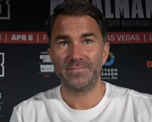 «У нас была встреча с Его Превосходительством (Турки Аль аш-Шейхом), и они хотят дождаться и увидеть, что произойдёт 18 мая (в бою за звание абсолютного чемпиона между Александром Усиком и Тайсоном Фьюри), — говорит Эдди. — Я думаю, будет трудно организовать реванш между Усиком и Фьюри. Если Фьюри победит, спрос на его бой с Джошуа просто выйдет из-под контроля. Но нам известно, что сделка у них на два поединка».