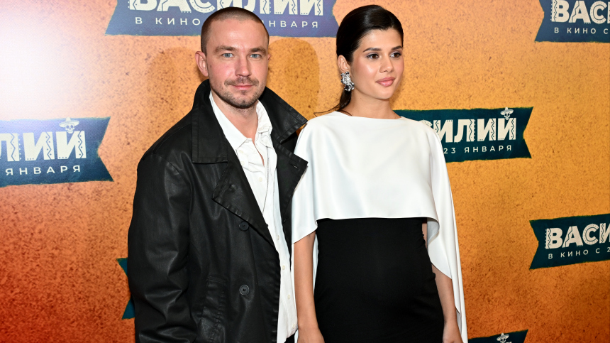 Актер Саша Петров впервые вывел в свет свою жену Викторию после новостей о пополнении в семье. Пара предстала перед камерами на красной дорожке премьеры фильма «Василий».