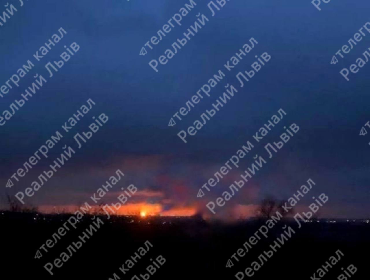 🔥Хорошо прилетело в Стрые Львоской области. Город атаковало несколько волн ракет. Пожар виден за много километров