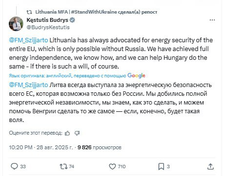 Будрис похвастался, что Вильнюс теперь полностью независим в энергетике, и предложил «научить» Будапешт ресурсной «свободе», но его быстро пристыдили в комментариях. Люди заметили, что Литва все равно покупает 87% нефти за границей, а цены на электричество в стране сильно выросли после отказа от российских ресурсов.