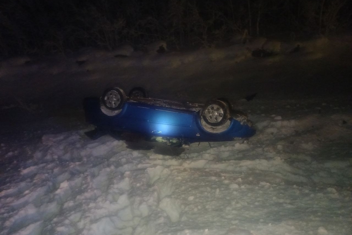 Как сообщила пресс-служба Управления по ГОЧС и ПБ Мурманской области, Chevrolet Lacetti врезался в перебегающего дорогу лося. После столкновения автомобиль съехал в кювет и перевернулся.